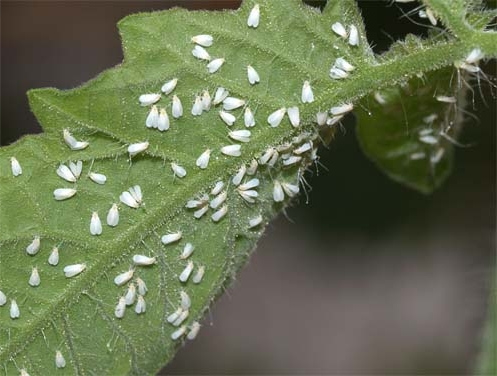 Het is een vlinder die er onschadelijk uitziet. Maar een prachtige vlinder moet iets eten en ze houdt vooral van tomatensapzaailingen. Door de werking van het insect verschijnen gele vlekken op de bladeren, die constant groter worden. Als de vlinder de plant blijft aanvallen, drogen de bladeren uit en sterven ze af. Naast het feit dat witte vlieg op zichzelf gevaarlijk is, kan het virale ziekten dragen, die ook gevaarlijk kunnen zijn voor tomatenzaailingen.