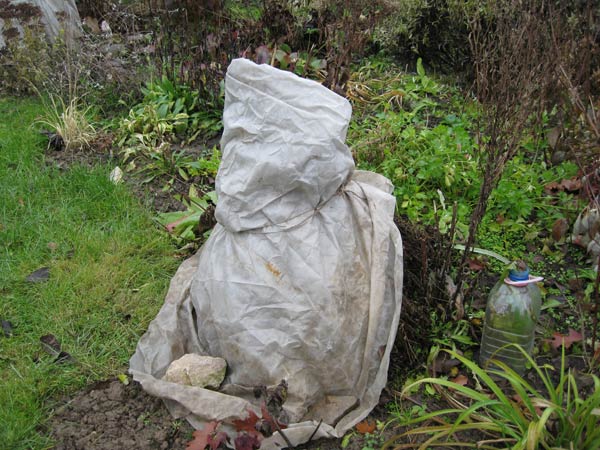 Als de bedden zich in het onderste deel van de tuin bevinden, waar de vochtige en koude lucht stagneert, is beschutting nog meer nodig. U moet jute of bouwmateriaal gebruiken. Bovenop is bovendien een tent gemaakt van lapnik. Dit geldt ook voor boompioenen.