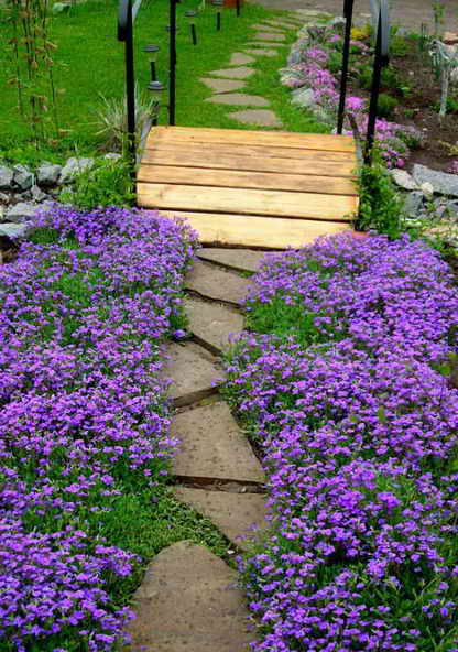 Aubrieta behoort tot het geslacht van meerjarige kruidachtige planten die elk landschap kunnen versieren. Met zijn hulp kunt u een bloementapijt maken, zowel in verticale als horizontale positie. Aubrieta bedekt de grond volledig met bladeren en weelderige bloei. Bovendien zal ze zich geweldig voelen in vazen of laden op het balkon. Ondanks de dichte coating, die de auspiciën creëert, zal het de ontwikkeling van andere soorten decoratieve bloemen niet storen.
