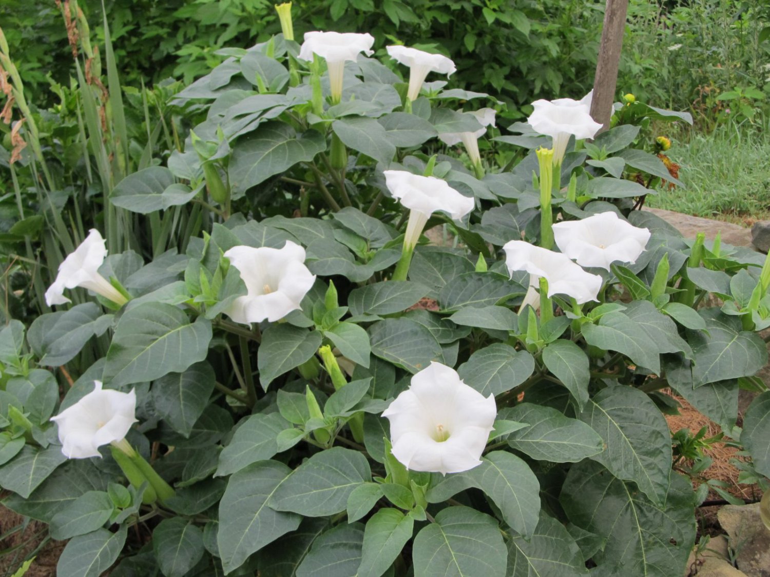 Het is de moeite waard om aandacht te schenken aan zo'n mooie en interessante plant, die "Datura" wordt genoemd. Deze bloemen hebben een zeer expressieve en spectaculaire uitstraling, ze kunnen gedurende het zomerseizoen bloeien, maar het grote voordeel van de plant is dat ze ongelooflijk lekker ruiken. Plant dergelijke planten niet waar er te weinig licht is, omdat dit tot de dood van de plant zal leiden of niet zal bloeien.Maar in de open gebieden van de zon voelt "Datura" zeer comfortabel aan en begint actiever en weelderiger te bloeien. Natuurlijk zal zo'n struik moeten worden vastgebonden, en de plant zal constant water moeten geven, op een zomerdag is het de moeite waard om deze variëteit aan bloemen minstens twee keer water te geven.