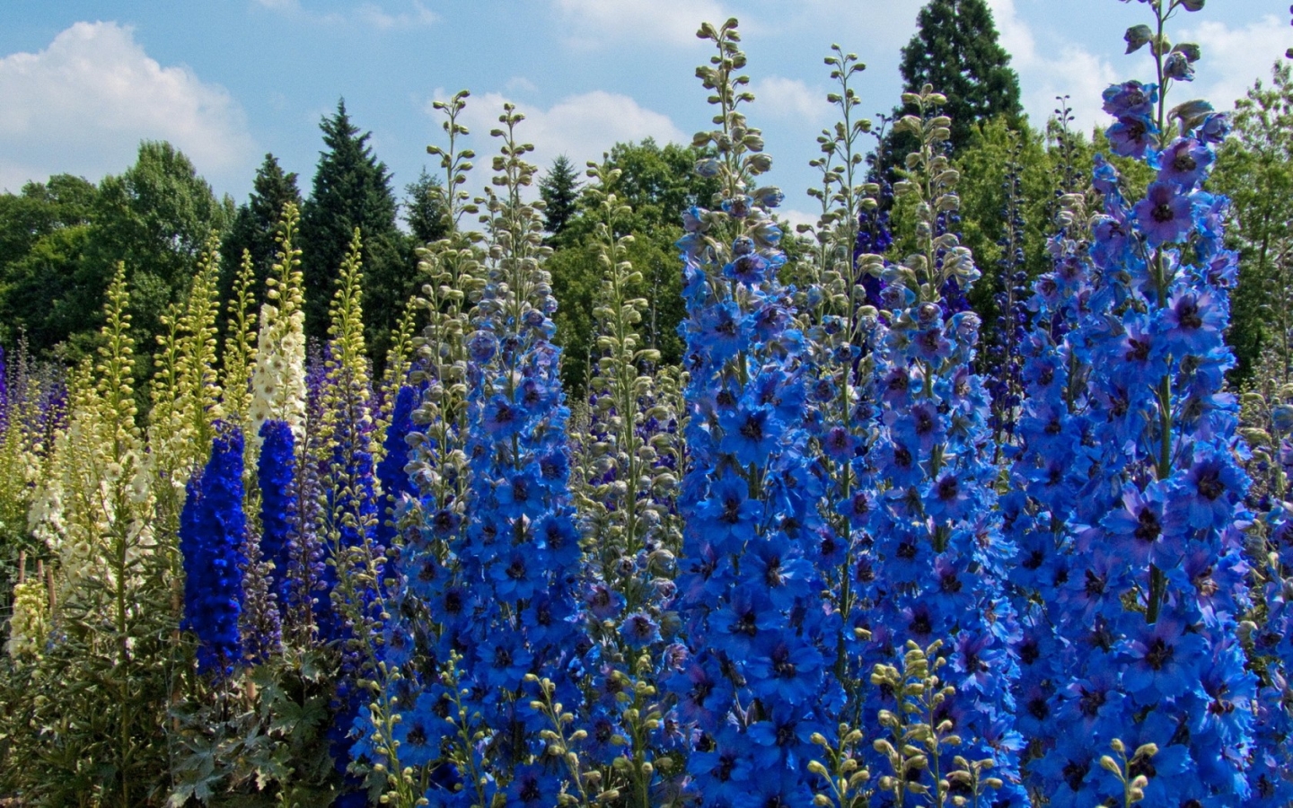 De volgende en laatste variëteit aan eenjarige bloemen, die de zeer mooie naam "Delphinium" draagt. Weegschalen worden beschouwd als een van de mooiste sierplanten, terwijl dergelijke struiken volledig pretentieloos zijn. De plant voelt zich zowel in de zon als in schaduwrijke gebieden goed van zichzelf. Deze variëteit kan niet alleen worden gekozen door professionele tuiniers, maar ook door beginners in deze kwestie, omdat deze variëteit gewoon in open grond wordt gezaaid. De zaden van "Delphinium" kiemen gemakkelijk zonder extra kieming, dus het is niet moeilijk om dergelijke bloemen in uw tuin te laten groeien.