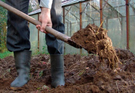 In de herfst moet de tuin worden opgegraven met 40-cm voren. Eerst moet je de grond bedekken met compost, mest. Eerst wordt de eerste groef gegraven, gevolgd door de tweede, die het graaft. Dus alle voedingsstoffen zullen in de grond zitten. Organische meststoffen kunnen aan de gegraven voren worden toegevoegd.