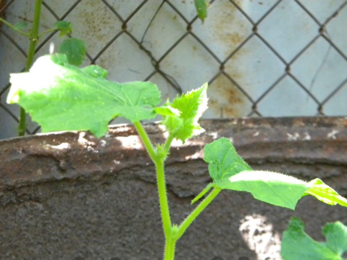 Als je goed voor de komkommers zorgt, bevriezen ze niet en groeien ze niet in de wind, de struiken kunnen zelfs nog hoger groeien dan de gevestigde ondersteuning. Bijvoorbeeld, hier, na de wieg, "wisselden" komkommers in een vat naar een aangrenzende boom, dus moesten we twee keer zo zorgvuldig naar het struikgewas kijken om de vruchten van komkommers daar te zien.