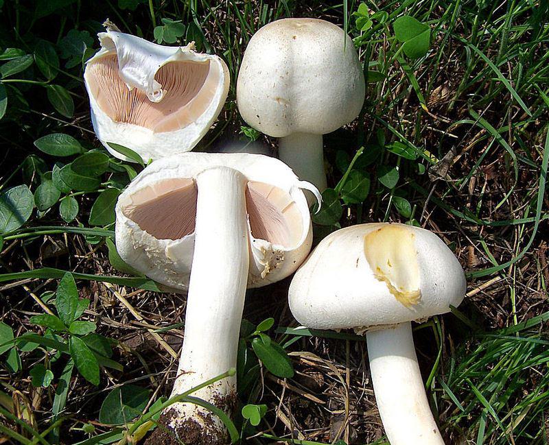 - champignon - vergelijkbaar met een groene paddestoel in een onrijpe staat door de bleke kleur van de hoed en de aanwezigheid van een ring op het been. Om de champignon te identificeren, moet je op de stam letten: deze is veel dichter in de eetbare paddestoel en dun - in de giftige. Ook onder de paddestoelkap zit roze vruchtvlees en groene vliegzwam is wit. Een ander onderscheidend kenmerk zal de aangename amandelgeur van champignon zijn, die goed waarneembaar is;
