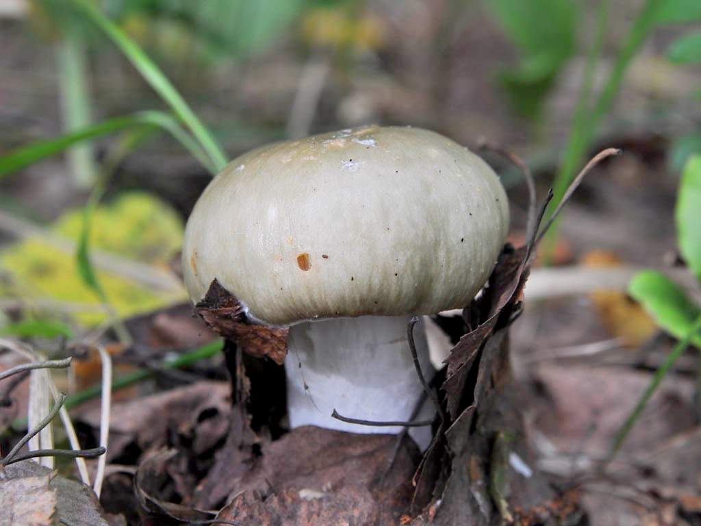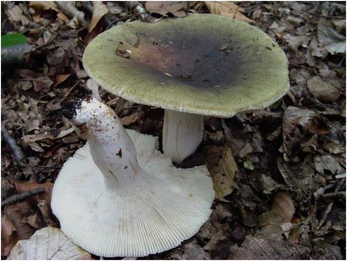 - Russula groen - lijkt qua kleur en vorm op jonge leeftijd op een dun been. De kleur van de hoed wordt bruin met de leeftijd, omdat een volwassen paddestoel niet meer zo op een fuut lijkt. De kleverige en glanzende russula-hoed kan ook een hulpgids zijn. De afwezigheid van een witte ring en een snee stelt ons in staat om het te onderscheiden van een giftige dubbel;