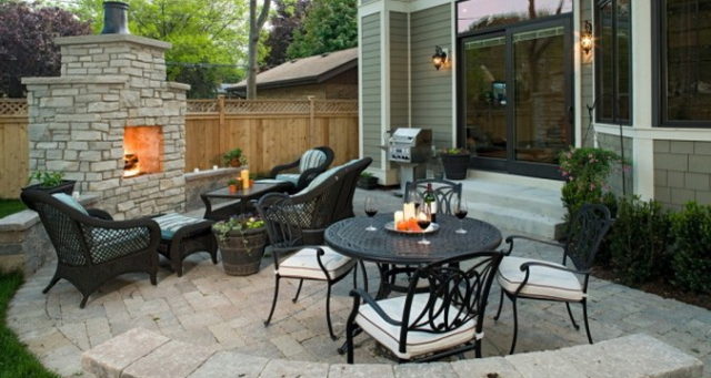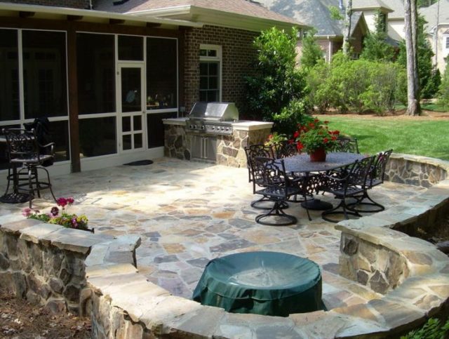 [sc name = "info-dashed" text = "In het midden van de binnenplaats kunt u een open haard of barbecue plaatsen, zodat u op koude avonden met uw familieleden erbij kunt verzamelen. Om het vuur er bijzonder indrukwekkend uit te laten zien, kun je een vuurplaats of zomerkeuken maken. Dergelijke beslissingen passen harmonieus in vurige toevoegingen in het ontworpen interieur. ”]