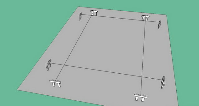 - Installatie van platen. Eerst worden de platen rond de omtrek geïnstalleerd, ertussen blijft een opening van 10 mm.