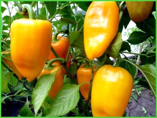 De plantaardige opbrengst is hoog. De hele stengel van de eerste vork is bezaaid met peperkorrels. Het gewicht van één vrucht reikt tot 200 gram - een uitstekende indicator voor peper. De dikte van de pepermuur is 0,5 cm Fruit bevat veel water, maar de smaak is verzadigd. Fruit is knapperig en bereikt zijn maximale bruikbaarheid tegen juli. In de zuidelijke regio's van Rusland kunnen de eerste peperkorrels al half mei rijpen, en in de gematigde zone, zelfs wanneer ze in kassen worden bewaard, begint de rijping van fruit eind juni.
