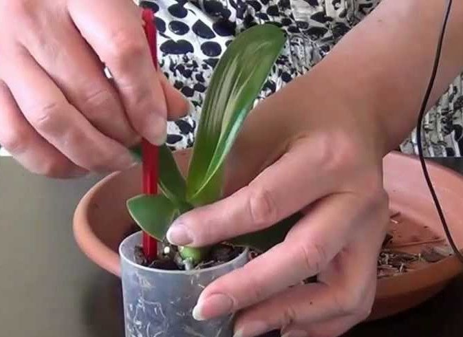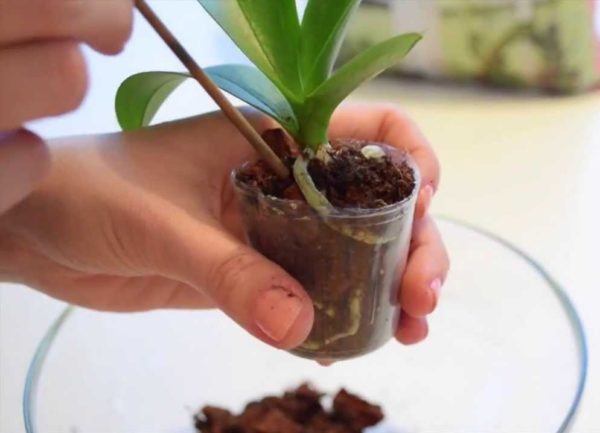 Na het planten moet je de pot regelmatig oppakken en goed schudden. Deze maatregel is nodig om vrije leegtes te vullen. Veel beginners weten niet of ze een jonge orchidee water moeten geven na een transplantatie. Bloemisten zorgen ervoor dat deze maatregel noodzakelijk is zodat de plant goed wortel schiet.