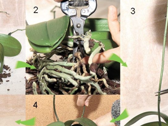 De orchideeëntransplantatie van Phalaenopsis moet zeer zorgvuldig worden uitgevoerd, aangezien deze bloem een fragiel wortelstelsel heeft, kan een plotselinge beweging hem beschadigen. Volg bij het verplanten de stapsgewijze instructies: