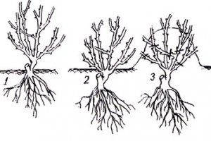 Landing met open wortels - in het midden van de put wordt de aarde met een heuvel gegoten en wordt een plant bovenop geplaatst zodat de wortels niet omhoog, maar langs de gegoten aarde worden gericht. Ze legen de leegte en vergeten niet te stampen en water te geven.