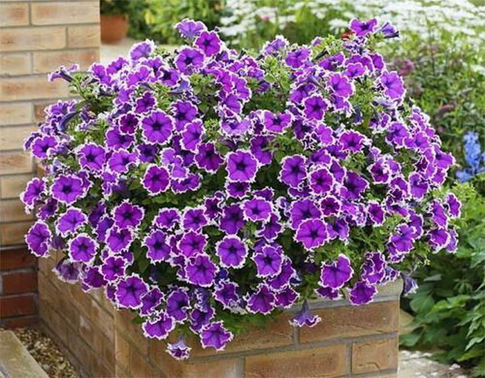 Petunia - een woord dat uit de Franse taal naar ons is gekomen, wordt vertaald als tabak. Ziet eruit als bloem voor tuin dus: een rechte vertakte stengel wordt bekroond met een grote bloem, vaak met een niet-zo-aangename geur, de laagste bereikt een hoogte van 0,10 m, de hoogste 1 m, struik (15-20 knoppen), er zijn talrijk, biedt een breed scala aan tinten. Een enorme variëteit aan variëteiten, verschillend in kleur, de grootte van de struik en bloeiwijzen, zijn: roze, wit, dieprode, gouden, blauwe, tinten paars, gestreept, gevlekt.