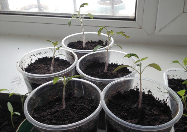 Als zaailingen in kratten of kleine bekers groeien, is het vochtgehalte van de grond zichtbaar op het bovenoppervlak van de grond. Het wordt aanbevolen om de zaailingen elke dag onder dergelijke omstandigheden water te geven, omdat het vocht snel verdampt.