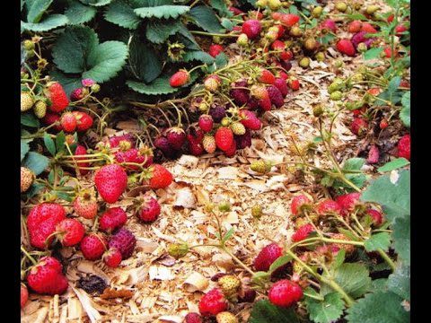 Voor het begin van warme en zonnige dagen, moeten aardbeienstruiken worden bedekt met plasticfolie.
