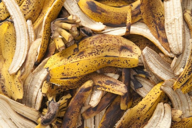 Bananenschil is een uitstekende meststof, maar vergeet niet deze grondig te wassen en over kokend water te gieten. Vergeet niet dat fruit in het buitenland wordt behandeld met chemicaliën om de houdbaarheid en opslag te verlengen.