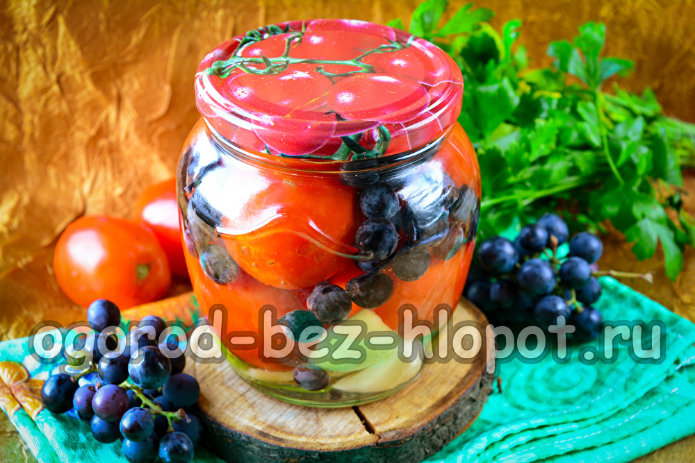 We bewaren tomaten elk seizoen, elke zomer, dus de recepten zijn al lang bekend en getest. Maar toch stoppen we niet met experimenteren en zijn we op zoek naar die kookoptie die als nieuw en onbekend wordt beschouwd. Vandaag kunnen we heerlijke tomaten en druiven voor de winter in de banken rollen. Een recept met een foto - je zult aan je vingers likken, hun smaak is zo aangenaam dat het moeilijk is om een additief te weigeren.