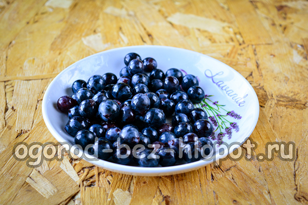 We plukken de druiven van de borstels, spoelen en het is klaar voor gebruik. Vandaag hebben we blauwe druiven gebruikt, het is in perfecte harmonie met tomaten en maakt hun smaak meer verzadigd.