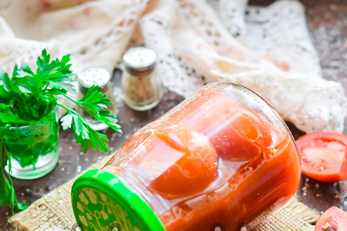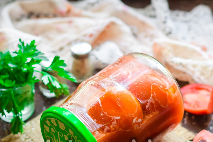 Tomaten in tomatensap voor de winter