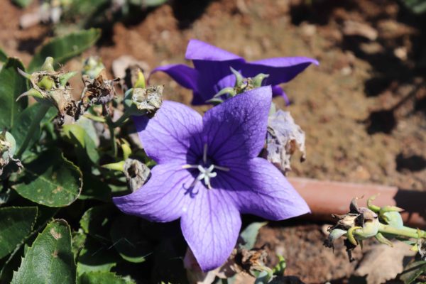 Op de middelste baan is het belangrijk om planten te beschermen tegen wintervorst. Dit kan worden gedaan door het gebied waar platicodon groeide te bedekken met een laag mulch of vergeeld gebladerte. Dus de plant overwinterde perfect.