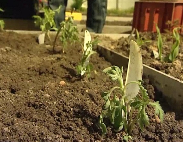 - bewaterd met overvloedige hoeveelheden verdedigd water 1 p. in 7 dagen, 2-3 dagen na het planten met een gieter zonder een tip, zodat er geen vocht op de bladeren valt. Onvoldoende watergift wordt aangegeven door het stoppen van de scheutgroei en rompkwalificatie;