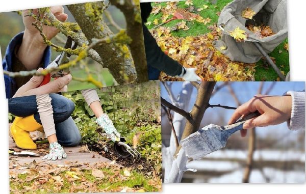 In oktober worden de bomen gebleekt en bedekken de grond rond de stam voor de winter, jonge bomen worden beschut tegen muizen en hazen met een ruberoïde. In oktober wordt het laatste aas van de grond uitgevoerd, de kunstmest wordt geselecteerd afhankelijk van de gewassen die er volgend jaar op worden geteeld.