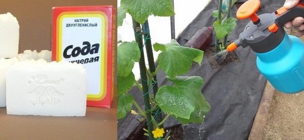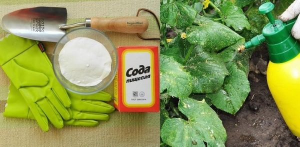 Natriumbicarbonaat is een alkali. Dit komt door de negatieve houding van kleine insecten ertegen, vooral die welke voorkomen bij komkommerscheuten, zoals bladluizen, spint. Als een profylaxe met soda-oplossing worden planten elke week bewaterd of besproeid na de vorming van 3-4 echte bladeren. Bij de eerste tekenen van de activiteit van schadelijke insecten worden extra componenten in de samenstelling geïntroduceerd.