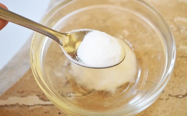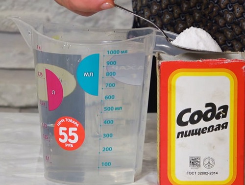 Een effectieve methode om de oplossing toe te passen is blad. Omdat de werkvloeistof op de scheuten terechtkomt, moet u zich aan een bepaalde technologie houden om negatieve effecten op de groene massa te voorkomen. Bereid eerst het mengsel: neem gefilterd of goed geregeld water en los voorzichtig soda erin op zodat er geen neerslag achterblijft.