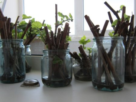 We verbouwen niets in het gekochte land en bevelen het niet aan anderen aan; maak de zaailingenmix zelf. Tijdens het rooien is het onmogelijk om de stekken van de ene plaats naar de andere te herschikken en tocht in de kamer toe te staan. Harden voor het planten van druiven moet worden uitgevoerd, een scherpe verandering van omgeving kan leiden tot de dood van een zaailing. Ik snijd de stekken in de herfst, ik bewaar voorbereidingen voor kieming op een glazen balkon, ik breng eind januari door met kieming.