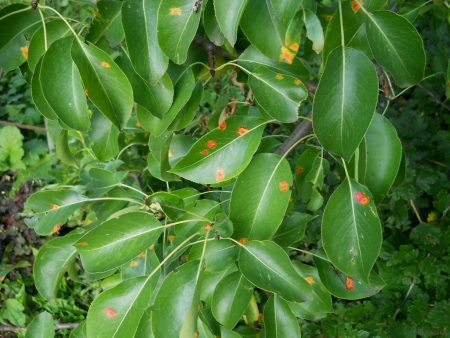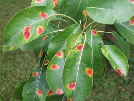 Geeloranje vlekken op de bladeren van een peer zijn het belangrijkste symptoom van een schimmelziekte van roest, die tot 50% van het gewas in één seizoen kan vernietigen. Bij ongecontroleerde voortplanting infecteert de schimmel de vruchten en scheuten, en in een kritisch geval kan dit leiden tot het drogen van de hele perenbomen.