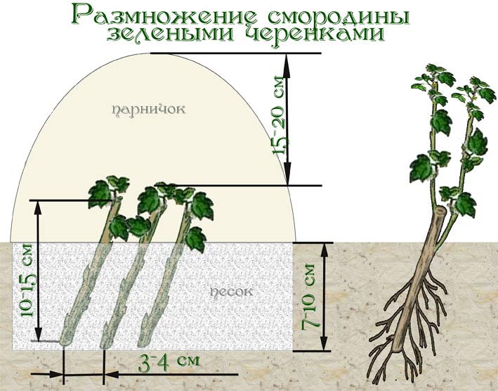 Jonge scheuten kunnen na 3 weken ontkiemen. Na volledige beworteling van de stekken, zal het nodig zijn om het watervolume tijdens irrigatie te verminderen. Begin op dit punt de plant met stikstof te bemesten. Na 30 dagen kan de kas dagelijks een paar uur worden schoongemaakt om de kamer goed te ventileren. Elke dag wordt de film geadviseerd om deze voor een lange tijd te verwijderen. Wanneer de bladeren op de zaailingen sterk worden, wordt de film voor altijd verwijderd.Zwarte bes: vermeerdering door stekken in de zomer is de gemakkelijkste optie voor het planten van een plant.