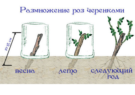 Voor het kweken van rozen wordt de meest gebruikelijke methode gebruikt - stekken. Als je het al in het tweede jaar gebruikt, kun je zaailingen krijgen. De stekken moeten worden genomen uit het middelste deel van de shoot, die al is bloeide. Het moet 2-3 gevormde nieren hebben. Alle manipulaties met stekken moeten 's ochtends worden uitgevoerd, wanneer de rozen verzadigd zijn met vocht. Na het trimmen moeten ze in water worden gezet.