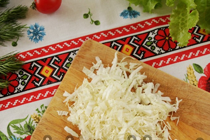 We wassen de Beijing-kool en vegen deze af. Hak de kool dun en snijd hem in stukjes van ongeveer 3 cm lang.