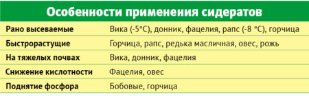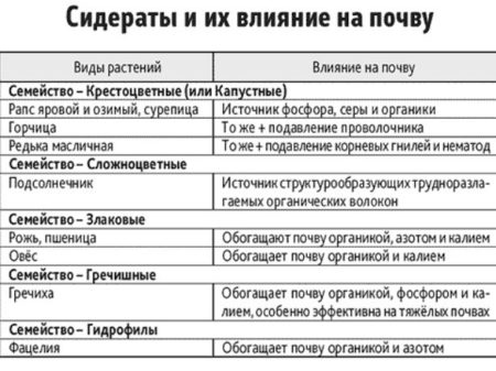 Siderata - dit zijn planten die worden gekweekt om de grond te verrijken met alle noodzakelijke sporenelementen. En ook sideraten remmen de groei van onkruid. Siderata zijn planten die snel groene massa opbouwen. Verder worden deze planten gemaaid en met aarde gegraven of als beschermende laag op het oppervlak achtergelaten. Het wortelstelsel van sideraten vervalt en dient als een extra voedingsbron voor geplante gewassen. Het luchtgedeelte van groene mest bedekt de grond tegen zonlicht, wat betekent dat het vocht niet zo intens verdampt, in de schaduw van deze planten sterven gekiemde onkruiden.