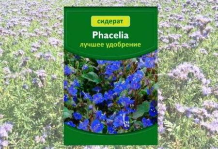 Een mooie plant met kleine blauwe bloemen is een honingplant. Na 45 dagen kunt u groen maaien.Het verdraagt koeling, groeit op elke grond, inclusief kwelders. Tijdens het seizoen kunt u het groene deel 2-3 keer knippen. Het wortelstelsel van de plant maakt de grond losser, verzadigt deze met stikstof, kalium en fosfor. Na phacelia, aardappelen en andere groenten, kruiden, bloemen worden geplant.