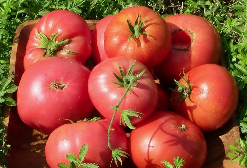 - Mikado roze - vegetatie 95-110 dagen. De plant wordt uitgerekt tot 2,5 m. Op de borstel maximaal 8 tomaten. Oogst van 3 struiken 9-12 kg. Platte afgeronde geribbelde vorm, het gewicht van de foetus bereikt 700 g.