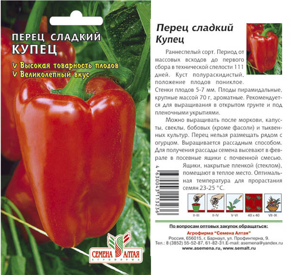 Een aangepaste hybride die perfect bestand is tegen temperatuurschommelingen en vorst tijdens de groei. Een zeer vroege hybride paprika die bestand is tegen de gevaarlijkste virussen. Kubusvormige donkerrode vruchten bereiken gewichtsindexen van 180-260 g, en de opbrengst per vierkante meter is 11-13 kg.
