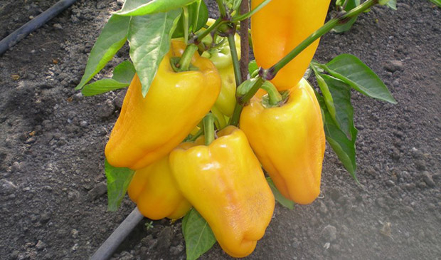 Een populaire hybride van vroege rijping. Het heeft een rijke gele kleur van technisch volgroeide paprika's, tot 220 g. Hoogproductief, met uitstekende smaak. Bestand tegen infectieziekten. De productiviteit van één struik is 3-5 kg.