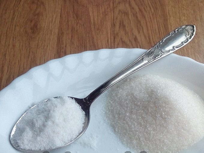 Wanneer alle gestoofde pruimen zijn gemalen, voeg zout en kristalsuiker volgens het recept toe aan de resulterende pruimenpuree.