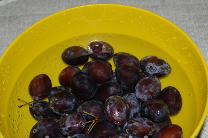 Neem voor de saus een blauwe, niet erg rijpe pruim, zodat deze zoet en zuur is, was hem. Als het fruit goed scheidt, verwijder dan de zaden van de pruimen. Als de botten slecht gescheiden zijn, kunnen ze nog steeds worden achtergelaten.