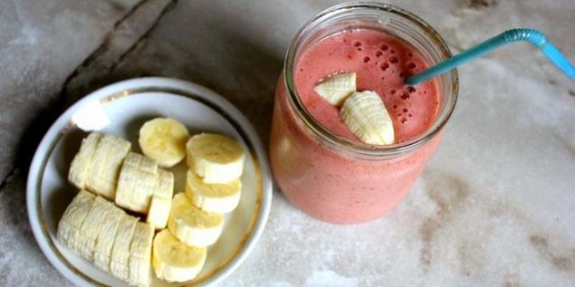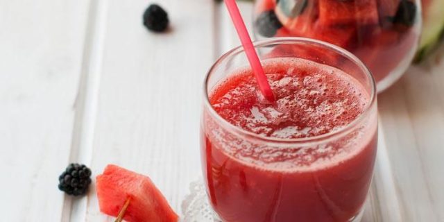 - Bevroren bessen en gesneden bananen worden in een blender geplaatst, gehakt. Giet de geplette ingrediënten in een glas of glas. Als de watermeloen niet voldoende is ingevroren, kan gemalen ijs aan de cocktail worden toegevoegd.