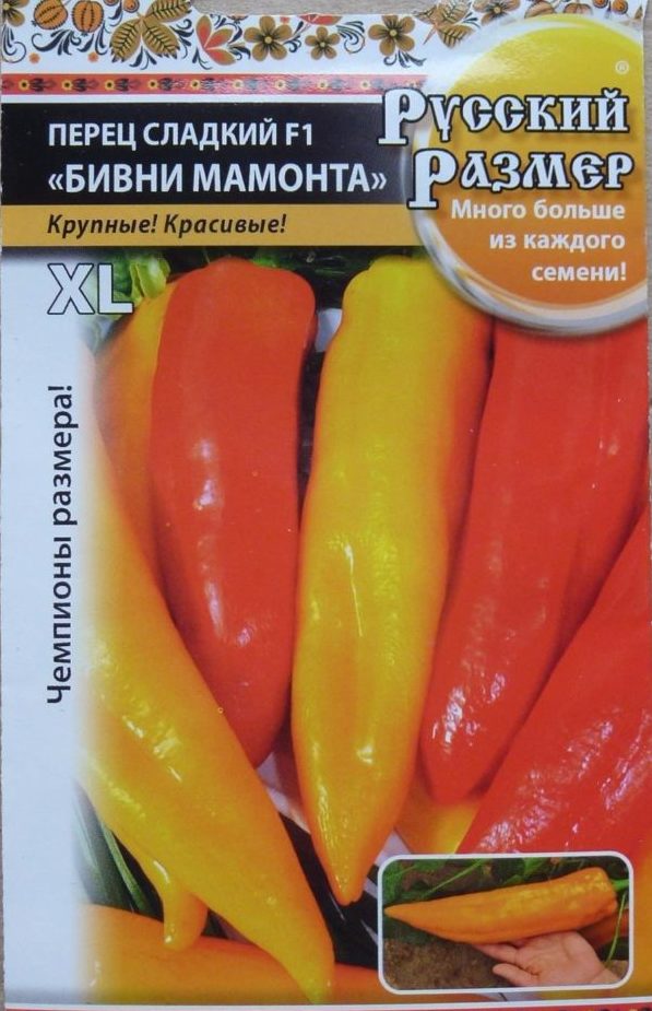 Een hybride plant die ervaren boeren weet te raken met de grootte van het fruit. Struiken tot een meter hoog zijn versierd met grote pepers, in een hoeveelheid van 12 stuks. De lengte van één is 28 cm en het gewicht is 250-300 gr. Groene kleur zal veranderen, verandert in een mooie schaduw van geel en vervolgens rood. De smaak van peper is zoet, het vlees is zacht, maar vlezig. U kunt mammoet slagtanden veilig bewaren, maar het is beter om de optie voor het inblikken met plakjes te kiezen. Fijne salade variëteit, ook geschikt voor snacks.