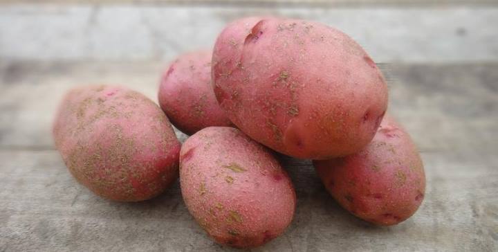 Aardappelen voor op tafel. De rijpingsperiode na het planten in de grond is ongeveer 3 maanden. Het gemiddelde gewicht van het wortelgewas is 80-110 g. Je kunt 8-12 knollen uit één struik halen. Het zetmeelgehalte is niet meer dan 16%.