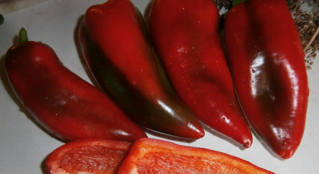 Vroeg rijp. 100-110 dagen na het planten, kunt u het voltooide gewas al oogsten. Struiken zijn hoog tot 170 - 180 cm, tot 15 - 16 paprika's kunnen groeien op een struik. Rijpe vruchten zijn helderrood van kleur, zoet, met een karakteristieke pepersmaak, met wanden van 1 cm dik.