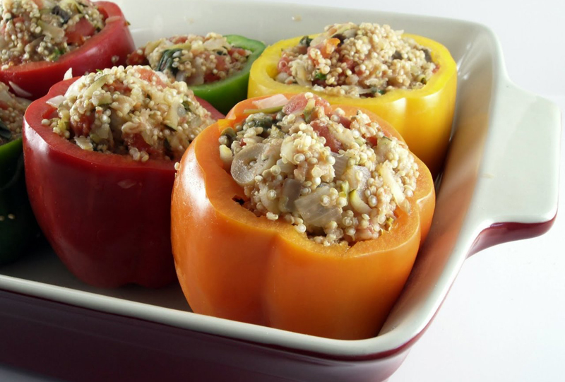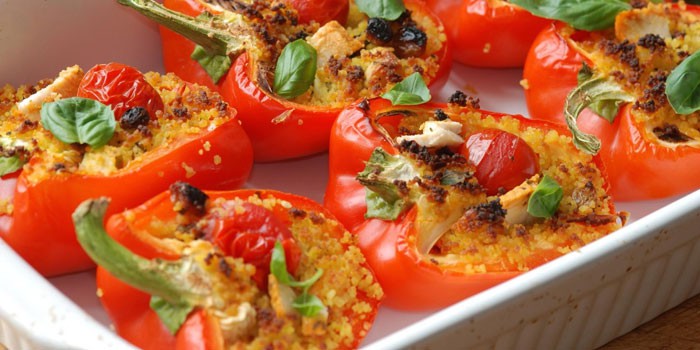 Dus peper is een gezonde, rijk aan voedingsstoffencultuur. Paprika's zijn schoonheidsgroenten. Versterkt huid, haar en nagels. Dankzij de gevarieerde kleur en rijke smaak worden ze een echt hoogtepunt van de feesttafel. En vooral onthult dat het hele smaakgamma hun vulling is.