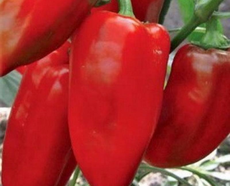 De variëteit verschilt van anderen in een hoge mate van kieming van zaden. Rijpe vruchten zijn kegelvormig, rood van kleur. Lang - ongeveer 10 - 12 cm De struik groeit tot 50 - 60 cm.