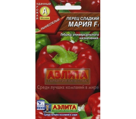 Veel hybriden zijn speciaal gemaakt voor het moeilijke klimaat van Siberië en de regio's op de middelste breedtegraad. Een van de beste gehybridiseerde variëteiten wordt beschouwd als Maria F1. Dit type paprika heeft een gemiddelde rijpingsperiode. Als je zaden zaait voor zaailingen in maart en struiken plant in mei, dan zullen de vruchten in de vroege dagen van juli voldoende rijpen zodat ze kunnen worden gegeten. Gemiddeld gaan 103-105 dagen voorbij vóór de technische looptijd.