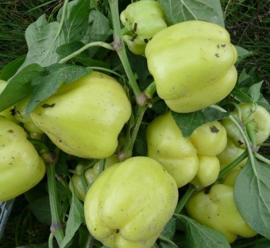 Plant Fedilio srednerosly, tot een meter hoog, zeer bladachtig. Onder de vele donkergroene bladeren worden grote vruchten van een zoete groente met sap en smaak gegoten. Paprika's hebben een aangename zilverwitte of lichtgroene kleur, groeien in de vorm van een kubus en wegen gemiddeld 175 gram. De huid is glad, met een gemiddelde dikte van 7-8 millimeter. De smaak van het fruit is sappig en verfrissend.