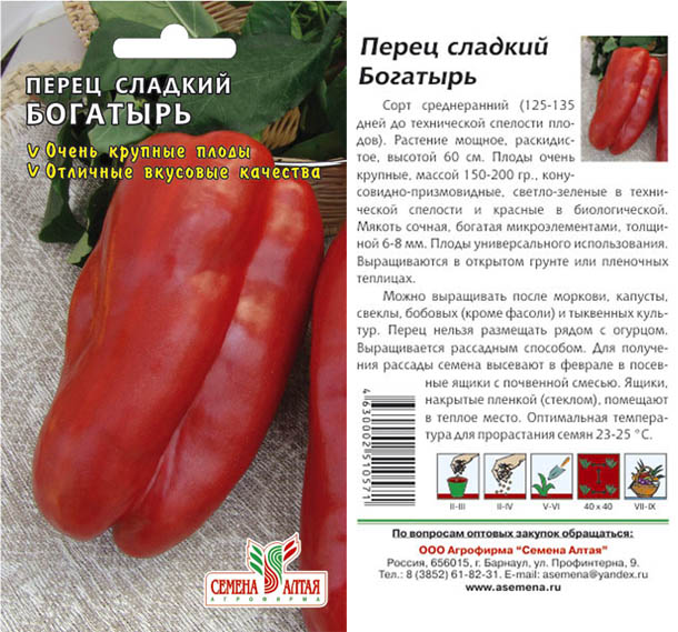 Het ras wordt ook in Siberië gekweekt en volledig gewend aan de lokale omstandigheden, blijft in de vroege stadia up-to-date. De hoogte van de plant is ongeveer 50 cm, de struiken zijn erg netjes, ze zijn gemakkelijk te verzorgen. Piramidale pepers, dikwandig, rood met een gewicht tot 60 gram. Smaak en commerciële kwaliteiten zijn zeer hoog, de vruchten, hoewel niet groot, maar zeer sappig. Productiviteit is ongeveer 4 kg / m².