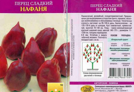 In vorm zijn de vruchten conisch met een spitse punt, donkerrood, soms met een duidelijke paarse tint. Het gewicht van één vlezige en smakelijke peper is niet meer dan 180 gram. De vruchtperiode is lang, opbrengst - 15 kg / m². Nafanya variëteit kan worden geplant in open en beschermde grond.