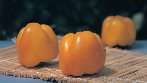 Fruit in de vorm van een kubus, geelachtig oranje, soms met groene vlekken tot 200 gram. Tijdens een seizoen worden maximaal 15 vlezige, sappige en ongelooflijk smakelijke pepers uit één plant verwijderd. Een zeer waardevolle en populaire variëteit voor universeel gebruik bij het koken.